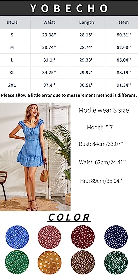 YOBECHO Women's Summer Ruffle Sleeve Sweetheart Neckline Printing Dress Mini Dress