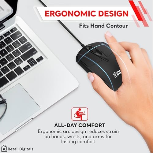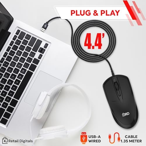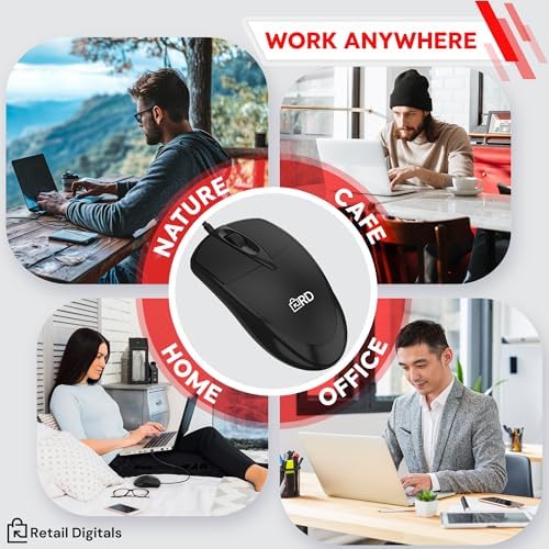 Retail Digitals 3-Button USB Wired Mouse | High-Precision Optical Tracking | ...