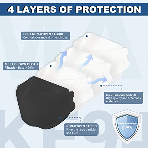 50PCS KF94 Mask Disposable Face Masks - Korean Imported Filter - Individually Wrapped 4 Ply Breathable Comfortable Safety Mask-3D Structure for Larger Breathing Space & Makeup Friendly-Black
