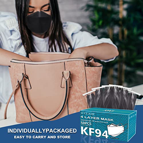 50PCS KF94 Mask Disposable Face Masks - Korean Imported Filter - Individually Wrapped 4 Ply Breathable Comfortable Safety Mask-3D Structure for Larger Breathing Space & Makeup Friendly-Black