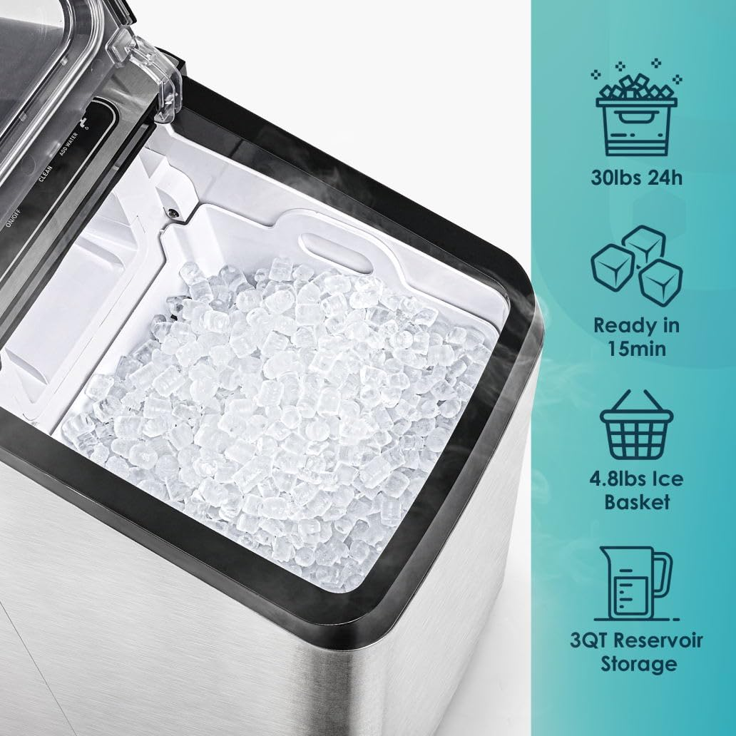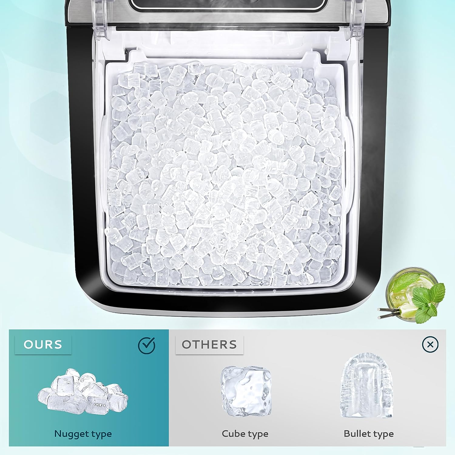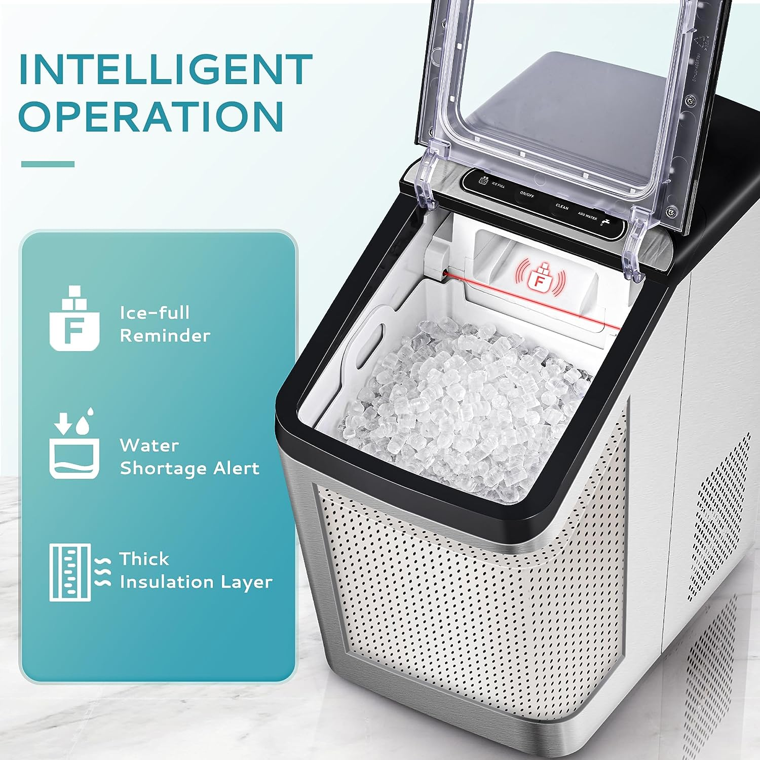 EUHOMY Nugget Ice Maker Countertop, 30lbs/Day, 2 Way Water Refill, Self-Cleaning Pebble Ice Maker Machine with 3Qt Reservoir, Ice Makers Countertop Ideal for Home, Office, Bar, and Party. (Silver)