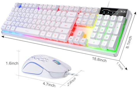 Gaming Keyboard and Mouse Combo, K1 RGB LED Backlit Keyboard with 104 Key for PC/Laptop(White)