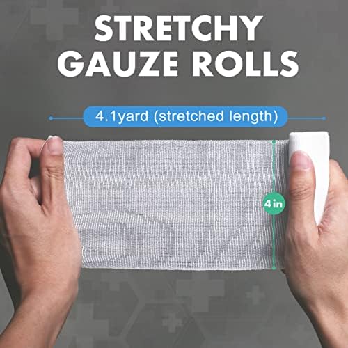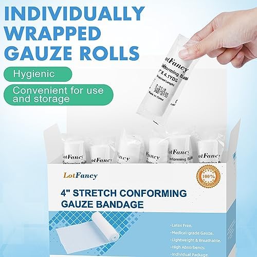 LotFancy Gauze Bandage Roll, 24 Count Gauze Wrap, 4 Inch x 4 Yards Stretched, Conforming Gauze Rolls, Medical Wound Care Supplies for First Aid