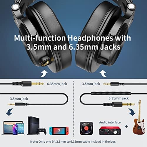 OneOdio A71 Hi-Res Studio Recording Headphones - Wired Over Ear Headphones with SharePort, Monitoring Mixing Foldable Headset with Stereo Sound, 3.5/6.35MM Jack for PC Computer DJ Guitar-Black
