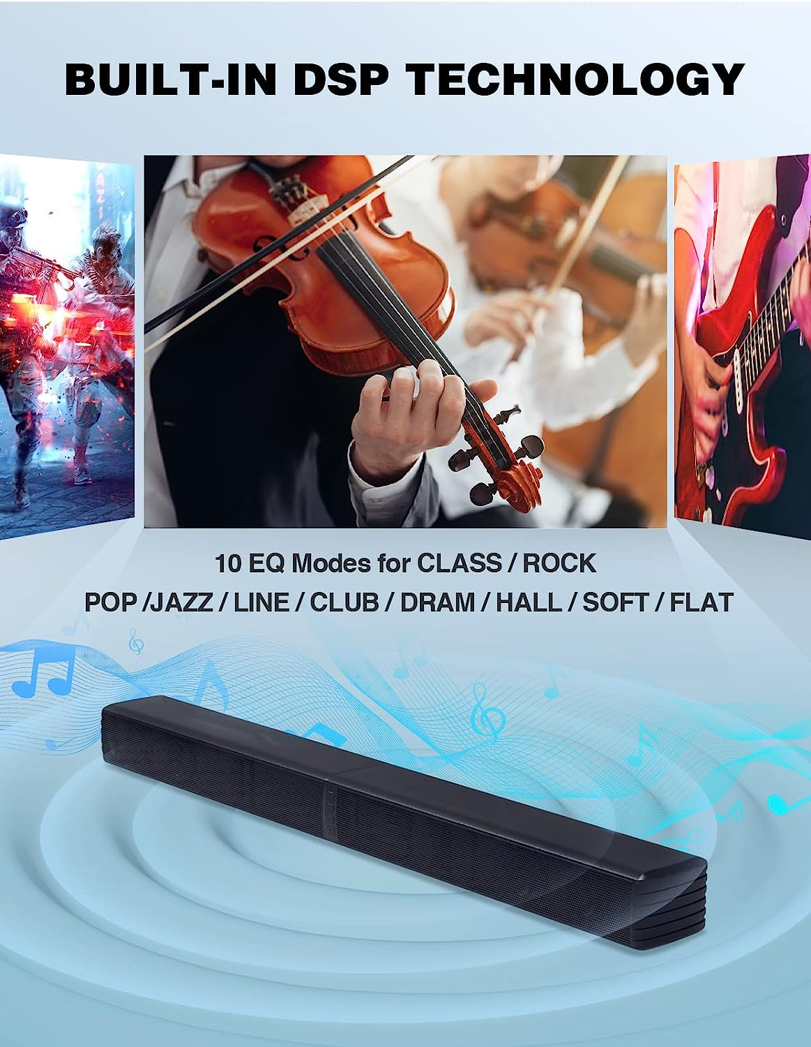 Puxinat 2 in 1 Separable Sound Bars for TV, 2.2 Channel 32Inch Bluetooth 5.0 TV Speaker for Surround Sound System, Built-in Dual Subwoofer, Bass Adjustable, Remote Control Included
