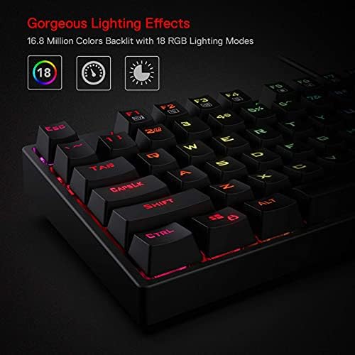 Redragon K582 RGB Mechanical Gaming Keyboard, 100% 104 Keys Standard Layout Gaming Keyboard with Double-Shot ABS Keycaps, Dynamic 16.8M RGB Backlit & Linear Red Switch, Redefine Software Supported