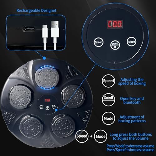 Smart Music Boxing Machine - Wall Mounted Music Punching Pad for Kids, Electronic Focus Agility Training Pad with Boxing Glove, Compact and Resilient - Maquina de Boxeo Musical Pared