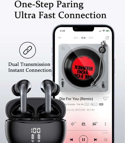 Wireless Bluetooth Headphones, 40H Playback Bluetooth Earbuds with LED Power Display Charging Case, IPX5 Waterproof Wireless Headphones with Mic for Phone Gaming TV Sports