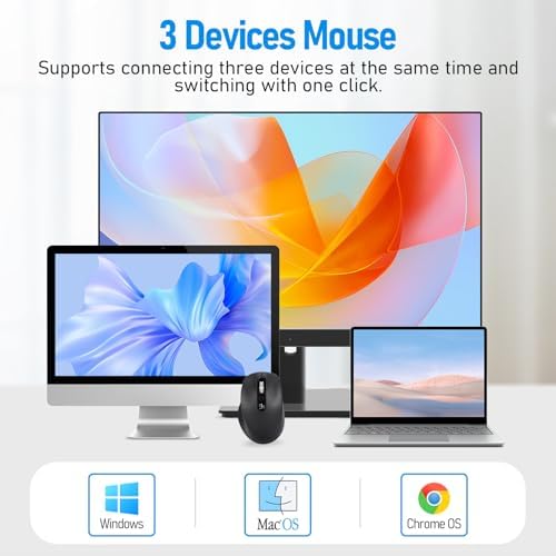 Wireless Bluetooth Multi-Device Mouse, 2.4G USB Receiver and Two Bluetooth, 4-Way Navigation Scroll Mice for Computer, Laptop, PC, MacBook, iPad(Black)