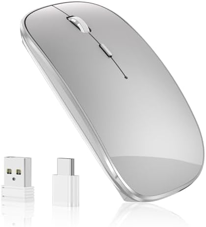 • Support Plug and Play: Both USB and Type C receivers are stored on the bottom of the mouse, take them out and plug into the computer’s port, and then it's working, not need to any drives, extremely easy to use.
